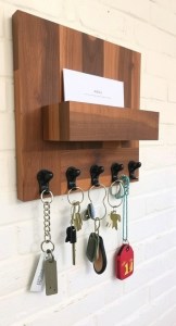 • Steps to Make It: Attach hooks to a wooden plank and add a small shelf for mail.