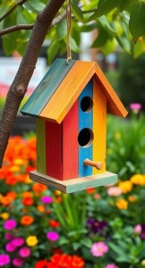 • Steps to Make It: Assemble a simple box with an opening for birds and add a slanted roof.