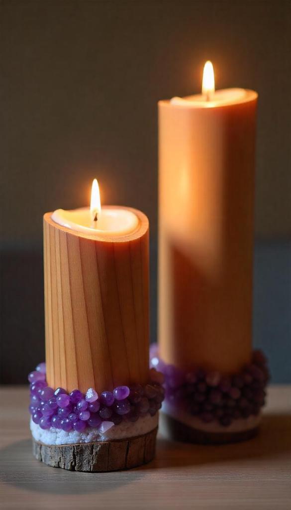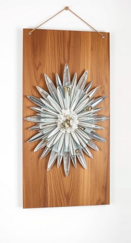 Create bold wall art by inlaying crystals into large geometric wooden panels. Experiment with asymmetrical layouts for a contemporary look.