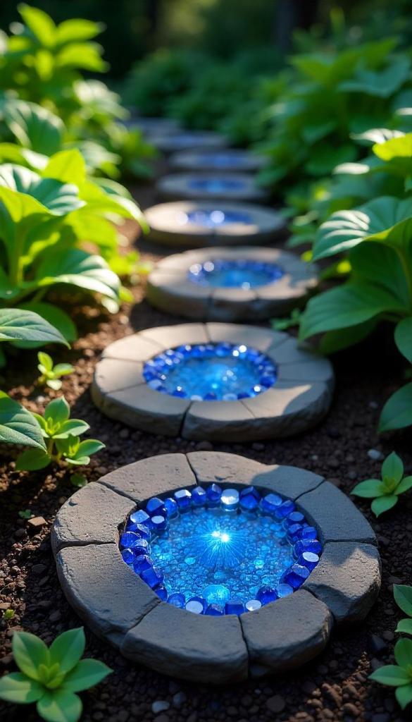 Embed crystals into stepping stones for a magical garden path. Use durable materials to withstand outdoor conditions.