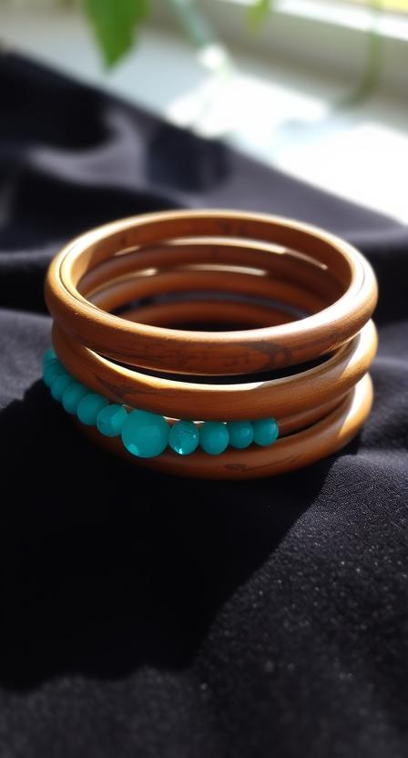 Carve channels into wooden bangles and embed crystals along the length. Seal with resin for durability and shine.