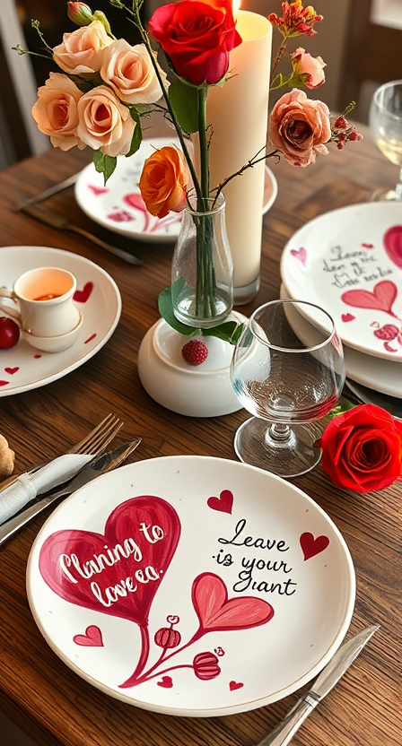 Personalized tableware adds a special touch to your Valentine’s Day meal. Paint plates and glasses with romantic designs or messages using ceramic paint. Create custom place cards using cardstock, calligraphy, or even leaves.