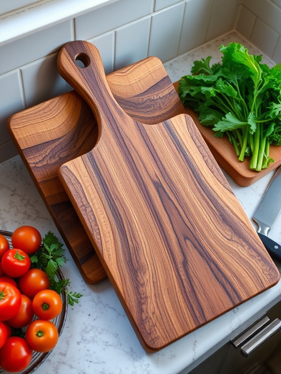 Wooden cutting boards are both practical and decorative. Offer unique shapes or wood combinations to stand out.