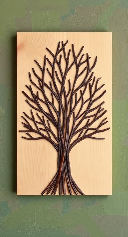 Hot-glue small sticks onto rectangular wood boards to form abstract tree shapes. Paint the background in earthy tones or leave it natural for a minimalist vibe. These projects are simple yet impactful, making them ideal for beginners or kids’ activities.